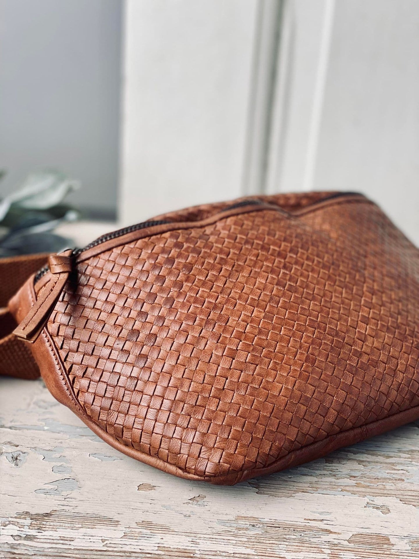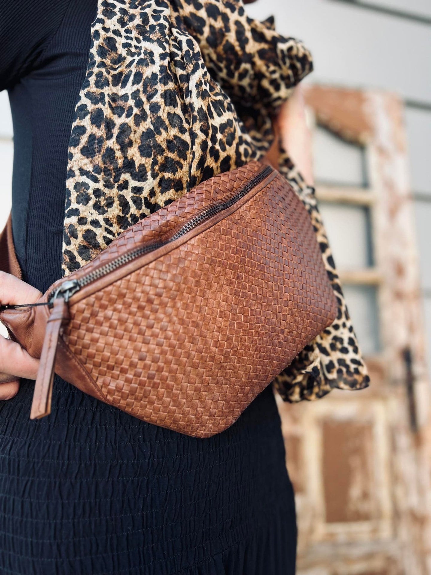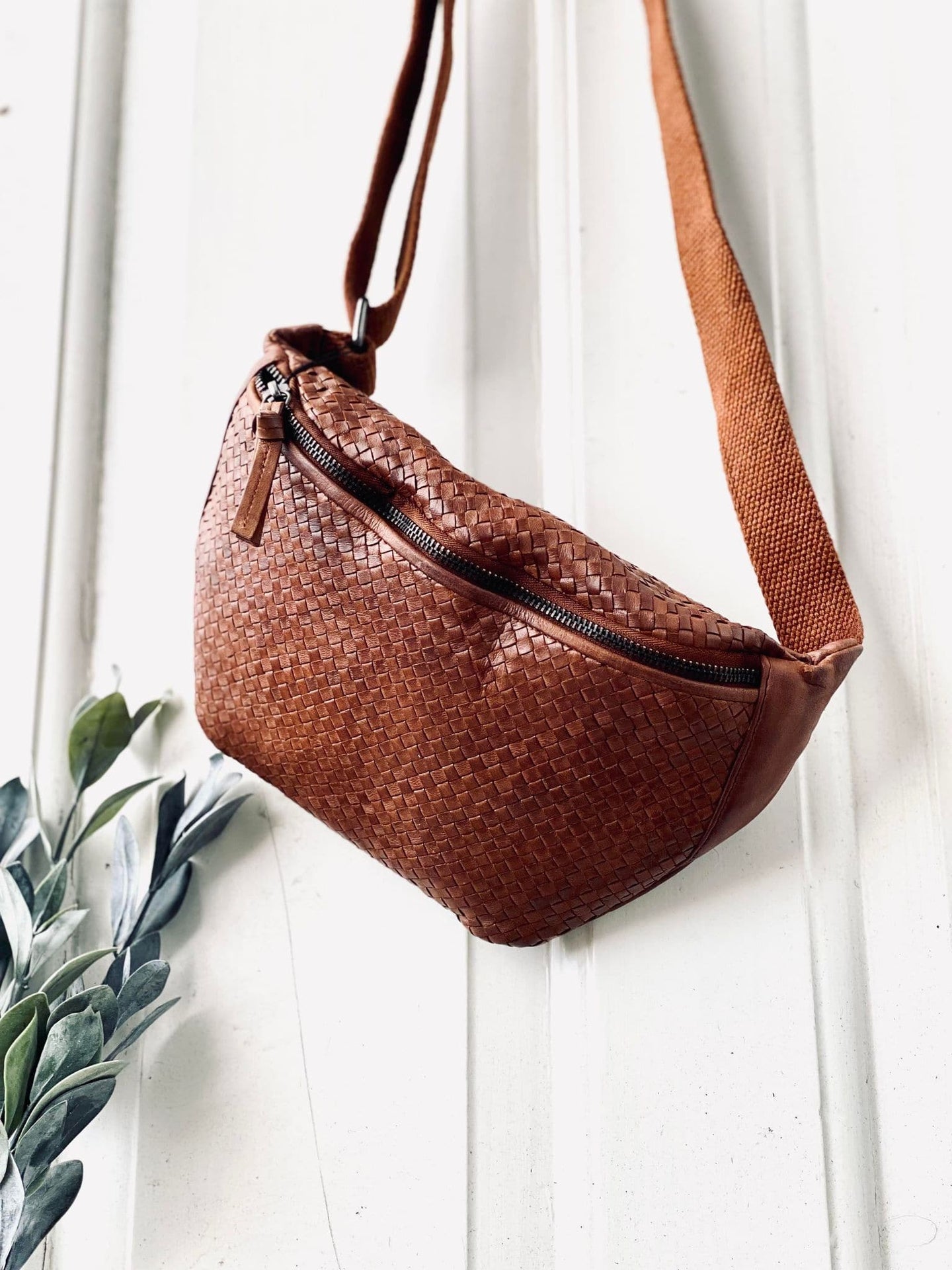 Bauchtasche KATIE Geflochten - Dunkel Cognac