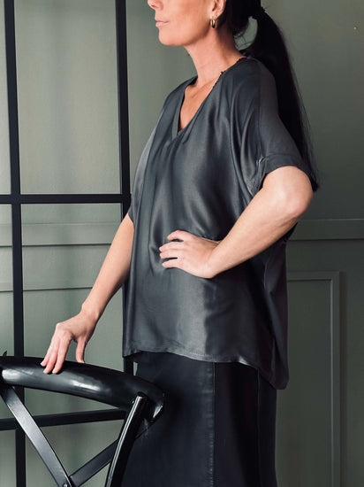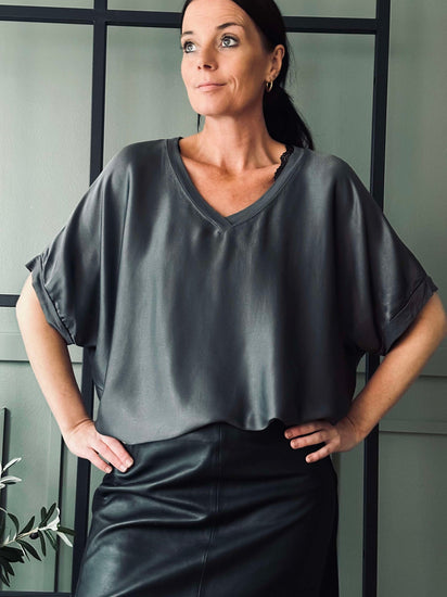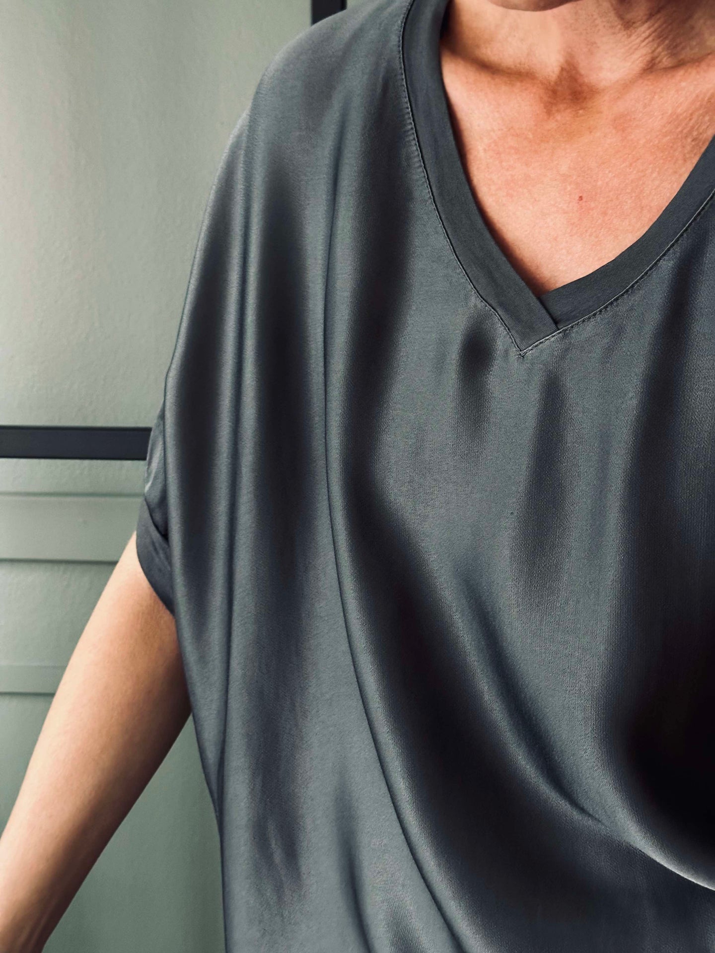 Wenn Sie nach einem vielseitigen Kleidungsstück suchen, das sowohl Komfort als auch Stil bietet, ist die Bluse MILA in Anthrazit eine durchdachte Wahl. Dieses Stück erfüllt den Wunsch nach müheloser Eleganz für verschiedene Anlässe und Körpergrößen.