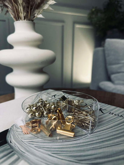 Organisieren Sie Ihr Büro stressfrei und effizient mit dem Büroklammer-Set in Gold. Sparen Sie Zeit und Nerven, indem Sie Ihre Schreibwaren ordentlich aufbewahren. Erleichtern Sie sich den Arbeitsalltag und genießen Sie eine übersichtliche Arbeitsumgebung.