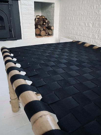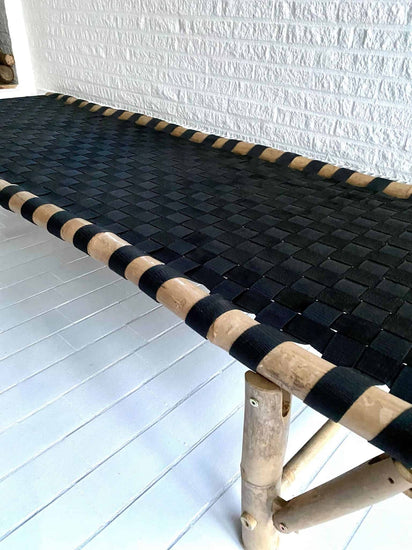 Diese Bambusliege mit schwarzer Sitzfläche bietet einen gemütlichen Ort, um sich zu entspannen und auszuruhen. Ihr schlichtes, aber stilvolles Design passt perfekt zu jedem Wohnstil und verleiht Ihrem Raum eine natürliche Ästhetik.
