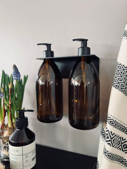 - Zur Wandmontage geeignet, kann zwei Flaschen oder Spender aufnehmen