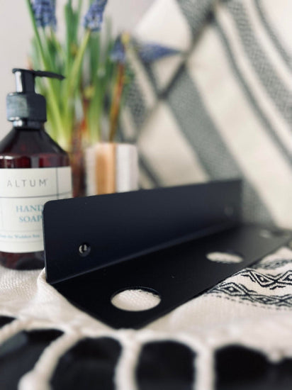 Unser Flaschenhalter zur Wandmontage besteht aus hochwertigem, schwarz pulverbeschichtetem Eisen. Dieses Material ist nicht nur robust und langlebig, sondern auch ästhetisch ansprechend. Es verleiht Ihrem Badezimmer einen modernen und minimalistischen Look. Die Pulverbeschichtung bietet zusätzlichen Schutz vor Feuchtigkeit und Korrosion, was besonders wichtig in einem feuchten Raum wie dem Badezimmer ist. Dieses Feature macht den Flaschenhalter zu einem praktischen und stilvollen Badezubehör.