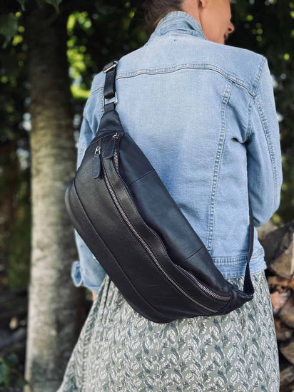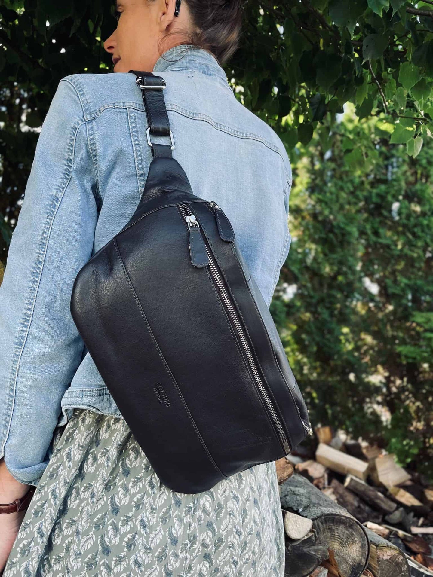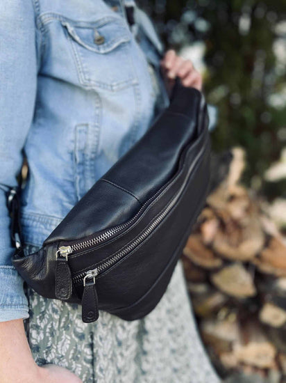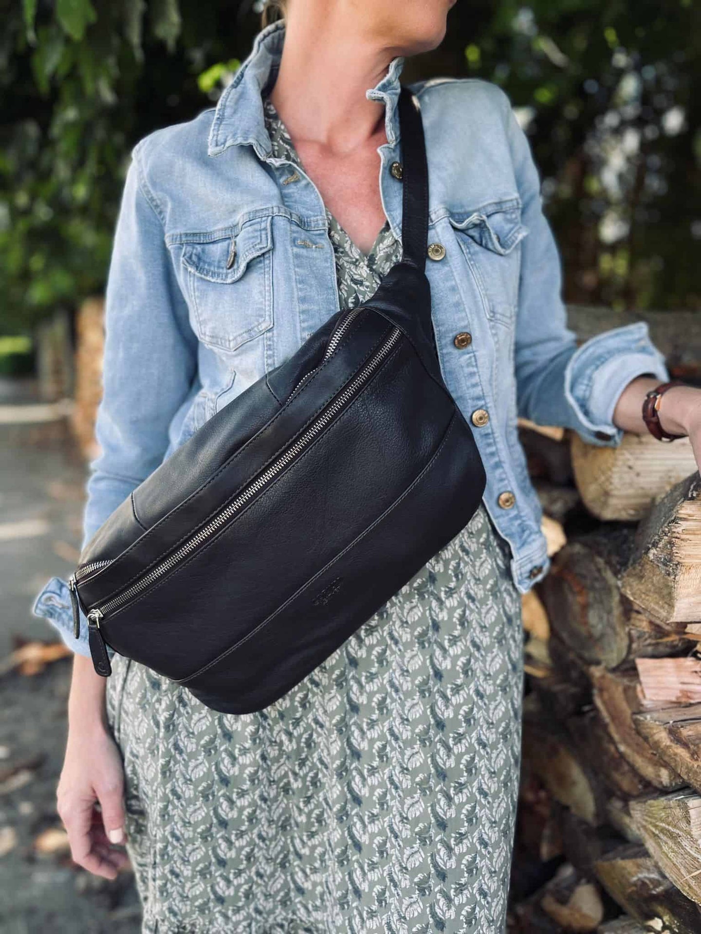 - Dunkelbraune Gürteltasche aus hochwertigem Leder