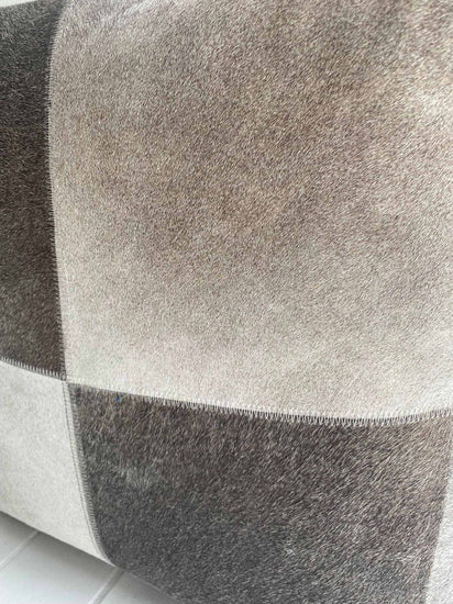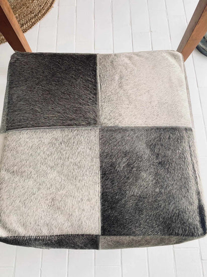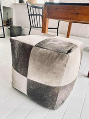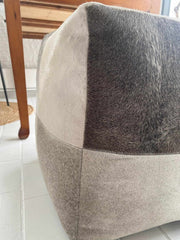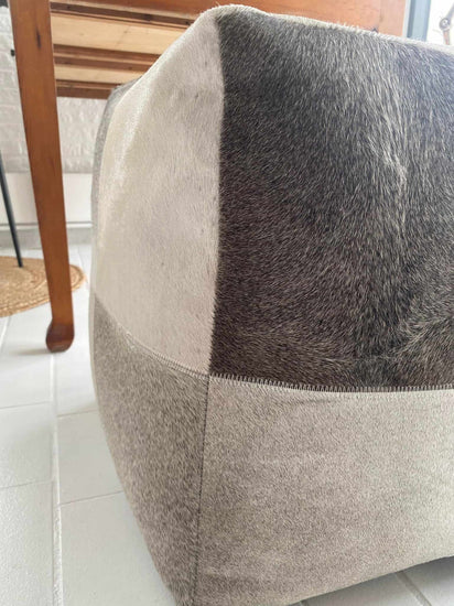- Hochwertiger Kuh- und Ziegenleder Puff in Grau