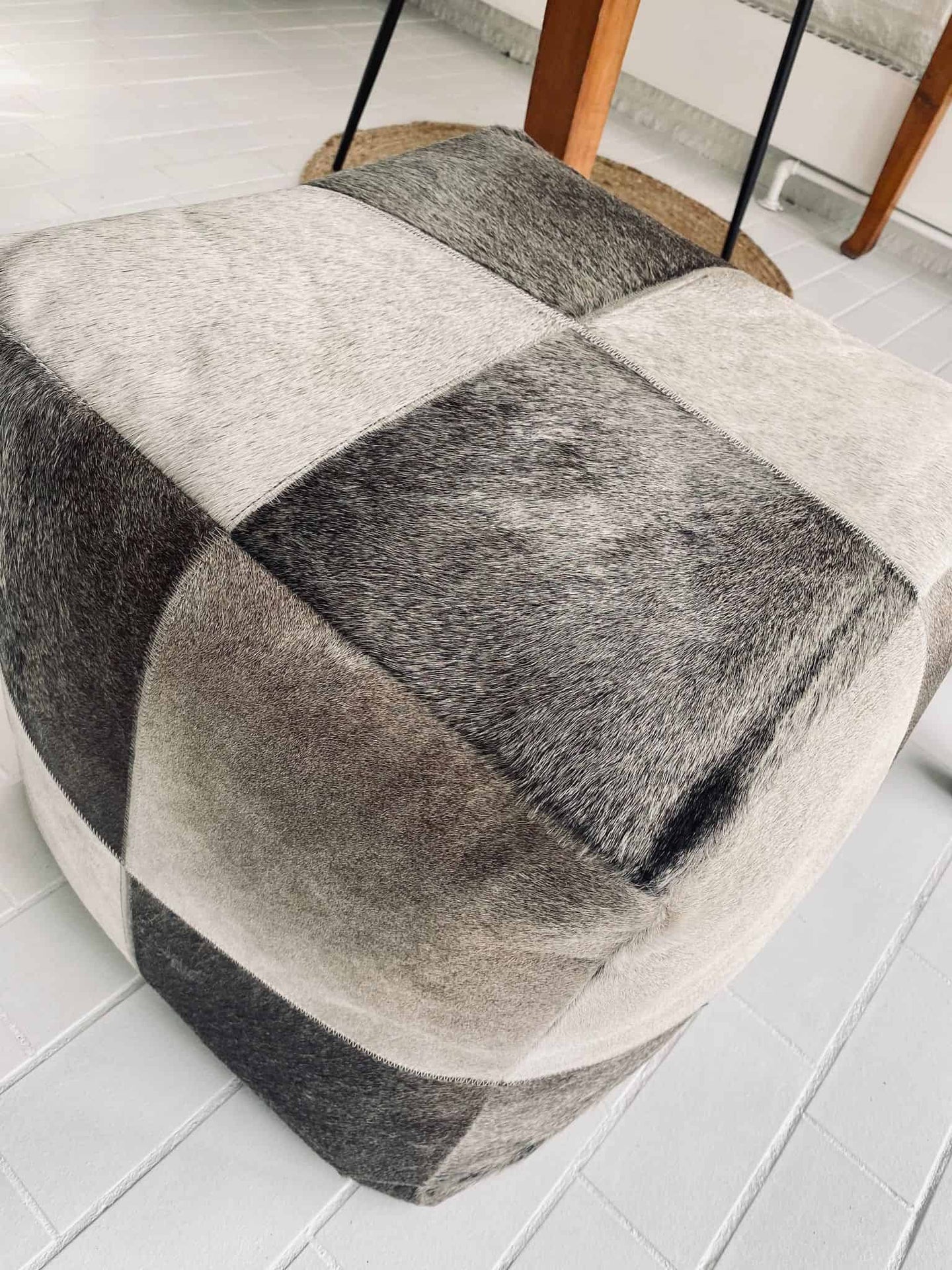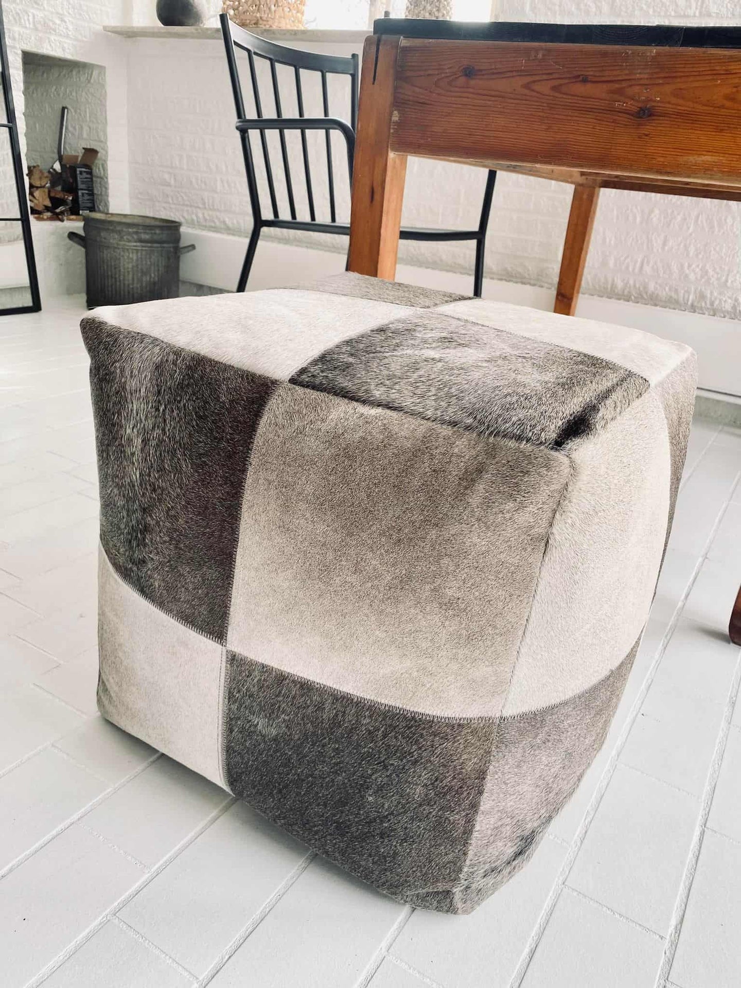 Der hochwertige Kuh- und Ziegenlederhocker in Grau