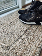 Unser Jute-Teppich ist nicht nur robust und langlebig, sondern auch angenehm zu betreten. Die natürliche Jutefaser ist bekannt für ihre hohe Strapazierfähigkeit, was den Teppich ideal für stark frequentierte Bereiche macht. Trotz seiner Robustheit bietet der Teppich ein weiches und komfortables Gefühl unter den Füßen. Dieses Gleichgewicht zwischen Haltbarkeit und Komfort macht unseren Jute-Teppich zu einer hervorragenden Wahl für Ihr Zuhause.