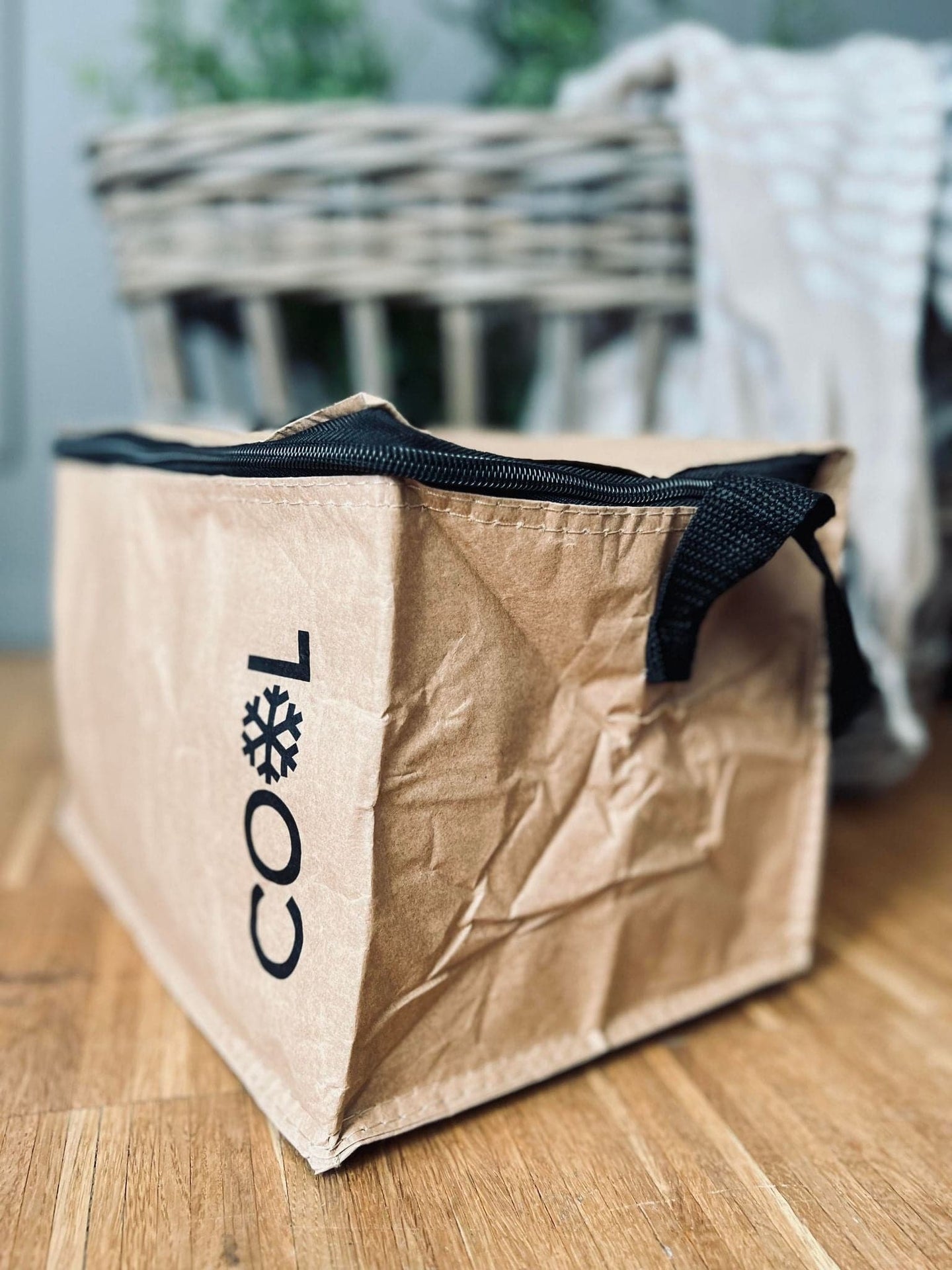 Ob Abenteuerausflug oder Picknick im Park - frische Lebensmittel und Getränke sind stets unerlässlich. Mit unserer Kühltasche im stylischen Papier-Look haben Sie stets ein praktisches und modernes Accessoire dabei, das Kühlfunktion und Design gekonnt miteinander vereint.