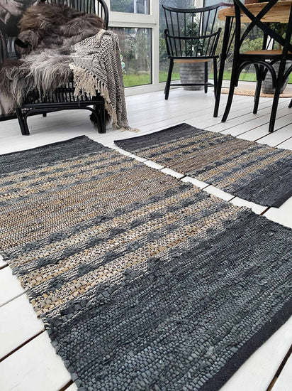 - Attraktiver Bodenteppich aus geflochtenem Leder