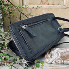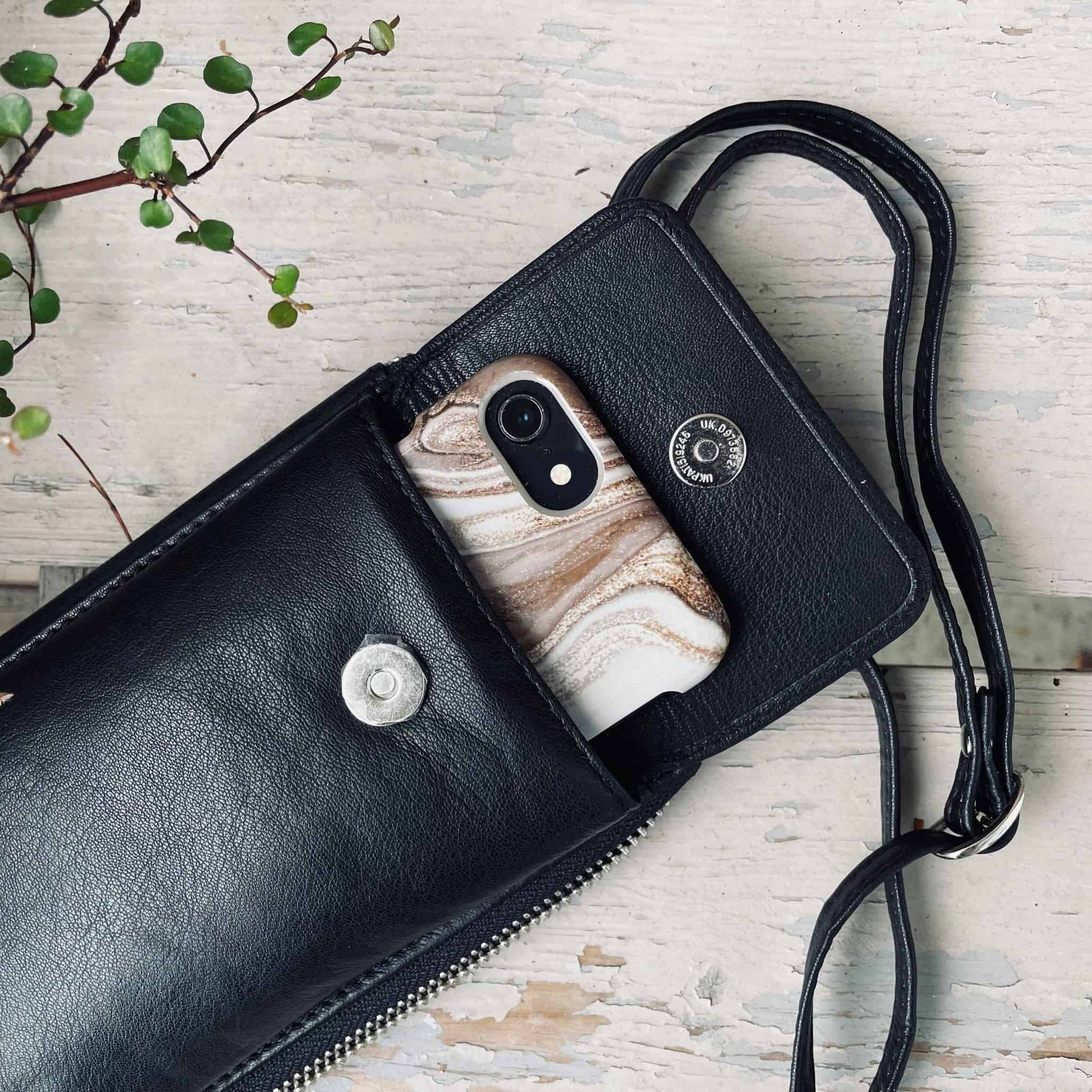 Mobil Crossbody FREJA, schwarz - Schwarzes Leder
