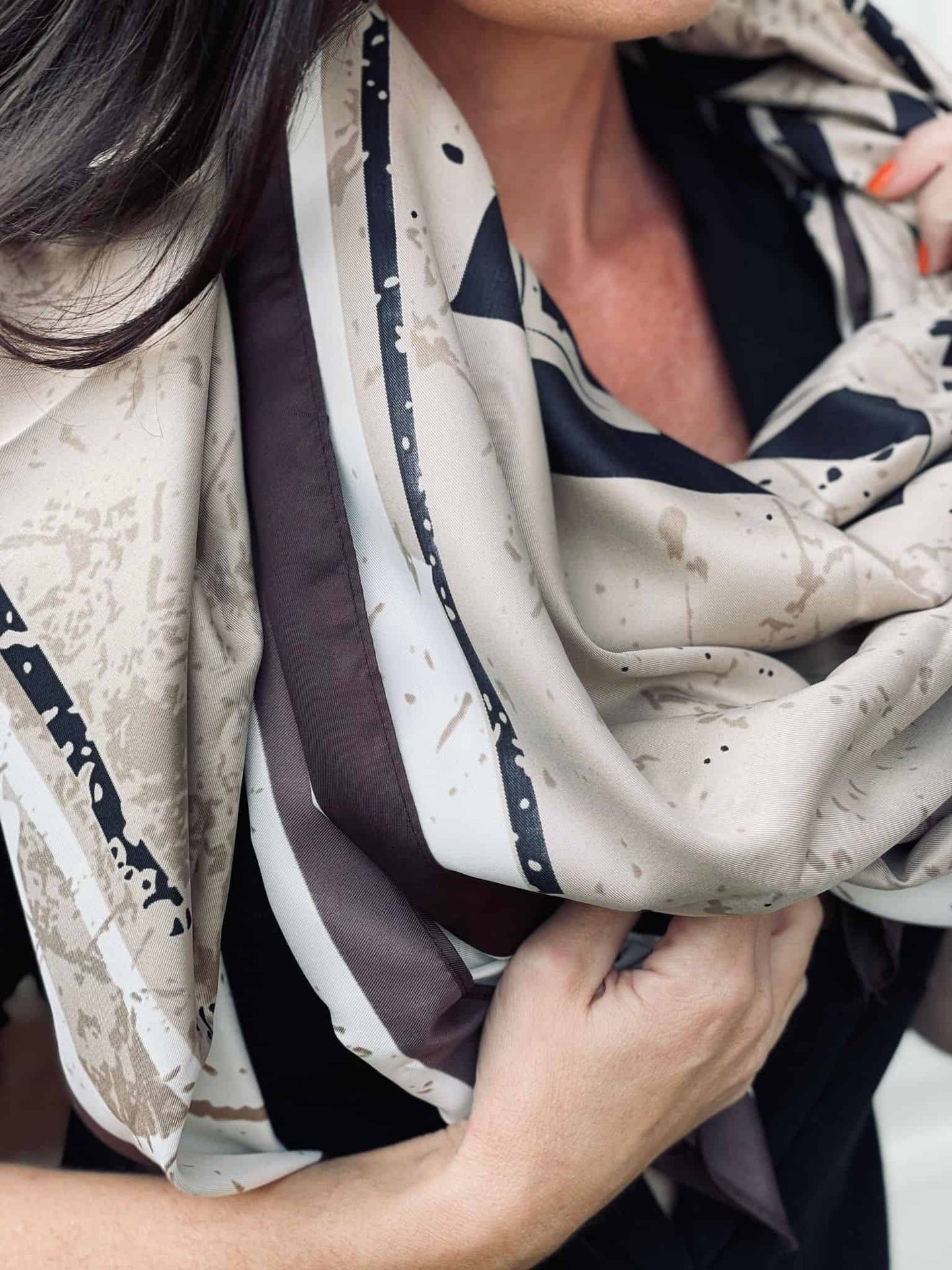 Dieser hochwertige Schal mit Schrift ist ideal für den stilbewussten Kunden, der Wert auf Details legt. Sein edles Aussehen und die praktische Waschbarkeit machen ihn zu einem unverzichtbaren Accessoire für jeden modernen Wohnraum oder modisches Outfit.