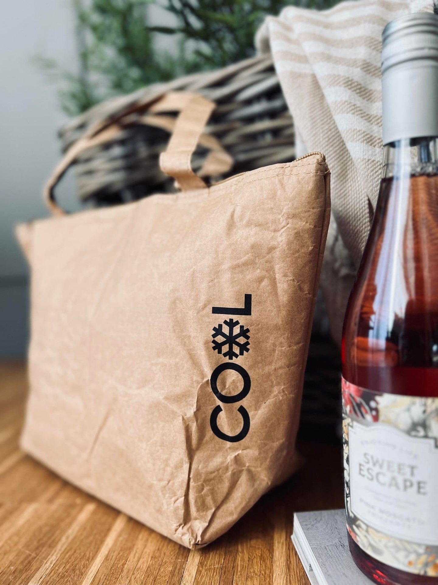 Genießen Sie Ihre Picknicks und Ausflüge mit unserem stilvollen Kühltaschenmodell im Papierlook. Mit seiner optimalen Größe und einzigartigen Ästhetik ist es nicht nur ein treuer Begleiter für Ausflüge, sondern auch ein modisches Accessoire, das Ihre Persönlichkeit unterstreicht.