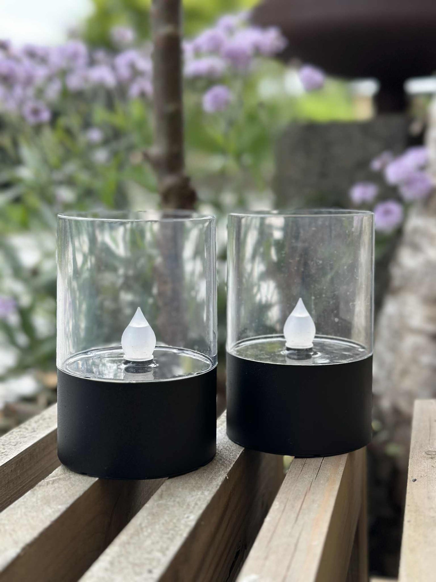 Solar-Kerzenhalter - 2er Set, Matt Schwarz