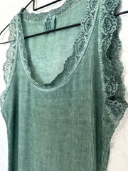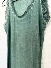 Erwecken Sie Ihren Kleiderschrank zum Leben und genießen Sie den Komfort und Stil des Spitzen-Tops in täglich staubigem Grün. Lassen Sie sich von seiner Vielseitigkeit überraschen und finden Sie heraus, wie dieses Top Ihren Alltag oder besondere Anlässe verbessern kann.