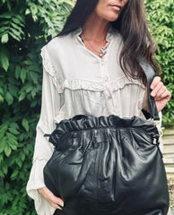 Suchen Sie nach einer Tasche, die sowohl funktional als auch stilvoll ist? Unsere Tasche mit Rüschen könnte genau das Richtige für Sie sein. Sie bietet Platz für alle Ihre Alltagsgegenstände und fügt jedem Outfit einen femininen Touch hinzu.